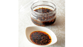 蝦醤(シャージャン)という調味料をもみ込んだから揚げ。赤とうがらしや花椒(ホワジャオ)とともに複雑な辛みをあわせます。