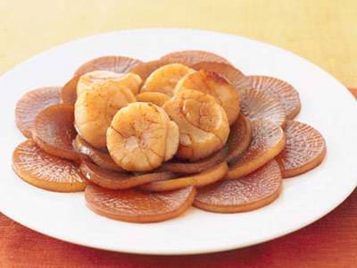 歯ごたえシャキシャキ、味はしっかりしみた大根。貝柱をのせるとたちまち豪華なおもてなしのお料理に!