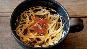 とろみをつけず、サラッと仕上げたスパイシーなスープ。豚バラ肉のうまみが大根にしみ込みます。ご飯のかわりに、うどんやそうめんなどでもおいしい!