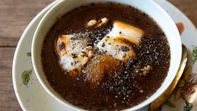 おいしい塩豚をつくったら、あとはじっくり煮るだけ!奥深いうまみが広がる澄んだスープは、至福の味わいです。