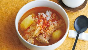 韓国でおなじみの「カムジャタン」をスープにアレンジ。ガツンとインパクトのあるうまみと辛さがご飯と好相性!