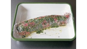パサつきがちで火の通し方が難しい豚ヒレ肉も、ハーブ漬けにすればしっとり。風味もしっかりしみ込みます。フライや丸ごとオーブン焼きにしてもおいしい。