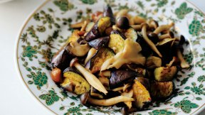 「きのこの煮びたし」をつくっておけば炒め物も簡単。おいしさのポイントはなすをしっかり炒めること。煮びたしのうまみをグングン吸い込みます。