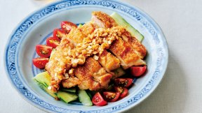 中華の人気の定番・油淋鶏(ユーリンチー)を揚げずに、焼いて手軽に。黒酢の酸味、花椒の辛みがきいたたれでおいしさアップ!