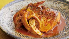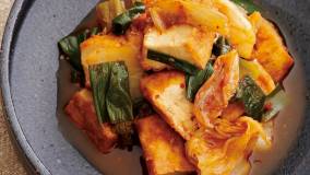 厚揚げと白菜キムチのうまみを生かした煮物。冷蔵庫で2~3日間保存でき、冷たくてもおいしいので暑いときでも食べやすく、重宝します。発酵が進んで酸っぱくなったキムチならば、さらにおいしくいただけます。