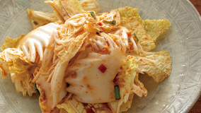 キョンファさんの家では、キムチを漬けた日には必ず食べるという一品。キムチとゆで豚は一口で味わって。