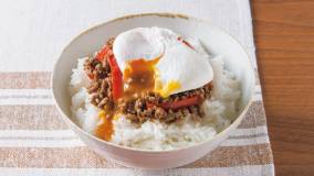 フライパンだけで手軽につくる、トマトやパプリカを使ったバスク風の煮込み。ポカポカの基礎栄養素ともいえるたんぱく質を、ふんわり丸めた柔らかな豚肉と大豆の、ダブルでとり入れます。