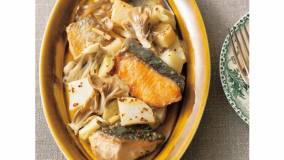 フリカッセはクリーム煮などの「白い煮込み」のこと。マスタードがアクセントのクリームが、ポカポカ効果を高めます。まいたけや長芋など和野菜との組み合わせも新鮮。