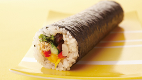 トマトのみずみずしさを閉じ込めつつ、カリッと揚げた技あり春巻。フレッシュなバジルと一緒に味わって!