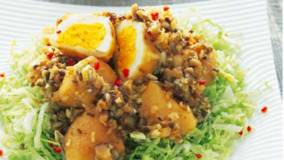 細切りにした新じゃがいものシャキシャキ感が抜群!高菜ととうがらしのピリ辛がアクセントになります。