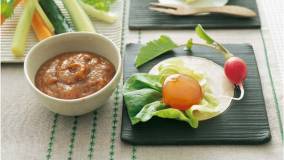 野菜をたくさん、楽しく食べられるサラダです。ディップはとてもヘルシーなのでたっぷりつけて!どんな野菜にも、パンにも合うおいしさです。