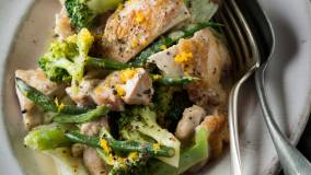主菜になるボリュームたっぷりのおかずサラダ。鶏肉と野菜は一緒に蒸し焼きにして、ふっくらジューシーに!