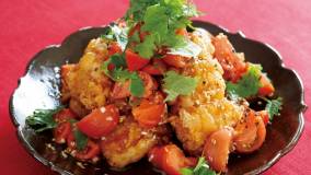 外はカリッ、中はジューシーな竜田揚げは、コウさんちの定番です。トマトねぎだれでさっぱり!