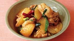 じゃがいもと骨付き鶏でつくる韓国料理「チムタク」を、大根でアレンジ。甘辛味で、ご飯がすすみます。