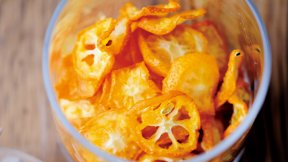 生の赤とうがらしにグラニュー糖や塩を合わせることで、本来の香りやほのかな甘み、うまみが引き立ちます。あとからフワッと広がる辛みは、月日がたつほどマイルドに。粗めのきび糖を使うと、さらに味わいが増します。
