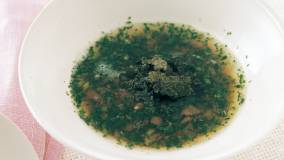 甘酸っぱい梅干しの風味とモロヘイヤのさわやかな苦みで、仕立てました。シンプルで上品な味わいです。