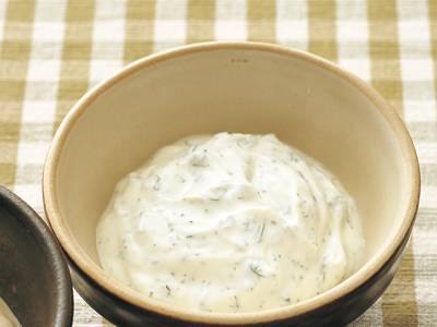 チーズのような味わいの「水きりヨーグルト」を、ハーブでさわやかにしたてたソースです。
