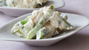 香りの強い茎の部分はハンバーグに混ぜ込み、柔らかい葉は、サラダに。パクチーならではの香りが、ジューシーなハンバーグに負けず、主張します。パクチー好きに、ぜひ食べてほしい一品。