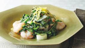 工夫次第で料理の幅が広がるクレソン。クレソンの苦みがえびの甘みを引き立てた一皿です。