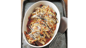 パプリカととうがらしをもみ込んだ豚肉を、なすではさんでオーブンで焼きます。手軽につくれるごちそうです。