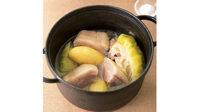 フランス北東部・アルザス地方の郷土料理【ベックオフ】の日本の冬野菜アレンジ。白菜やじゃがいもに白ワインでマリネした肉のうまみを吸わせます。