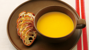 にんじんのおいしさを丸ごと味わえる、シンプルだけどぜいたくなポタージュ。グラッセと同じように、にんじんをバターでじっくり炒めてつくります。