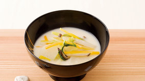 練りごまで香りを出し、にらの風味をきかせた個性的な豚汁。辛口のみそにみりんを加えることで甘みとコクが生まれます。