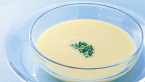 ひんやりなめらかな舌ざわりが醍醐味の、冷たいスープの代表格。じゃがいも、ねぎ、たまねぎをじっくりいためてうまみを引き出します。