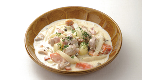 材料を下ゆですると時間短縮につながります。一口食べて思わず「うまい!」と声が出るクリームシチューですよ。