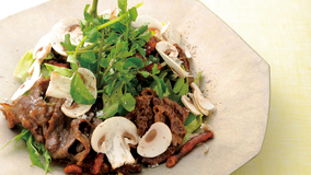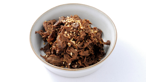 牛肉を香ばしく焼き上げ、しょうゆ味でしっかり煮しめます。好みの野菜にのせるだけで、いつものサラダがグレードアップ!