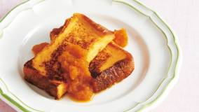 フランスパンのフレンチトーストは、もっちりした生地の弾力が魅力。さっぱりキャラメルソースで召し上がれ!