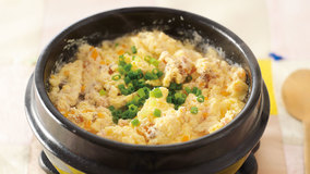 フライパンでつくる、大人気の石焼きビビンバ!コウ家定番の「ぐじゅぐじゅ卵」をのせ、焼き目をつけて、食卓で豪快にかき混ぜていただきましょう。
