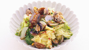 【手順は3つだけ!】酒蒸しにしてそれぞれのうまみを引き出します。たれをひと工夫して、韓国風の味に。