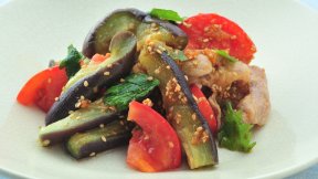 大阪なすは、少なめのお湯で落しぶたをして蒸しゆでに。冷めたら、手で裂くのがポイント。味がからみやすくなります。