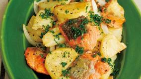 カレー粉と黒こしょうの風味でサーモンが香ばしくなる、おつまみ兼用おかずです。