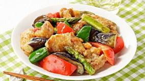 青じそのソース&トッピングのダブル使いで、チキンソテーが爽やかに。パサつきやすい鶏むね肉は、小麦粉をまぶしてソースをからめ、しっとりと仕上げます。