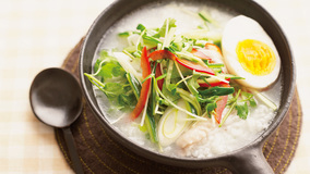 昆布と鶏手羽肉のダブルのだしに、香り、歯ごたえのよい野菜をたっぷりのせて、爽やかな新食感を楽しみましょう。。。