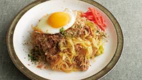 ソース味をしっかりつけたしらたきは、中華麺と遜色なし!とろ~り卵をからめれば、満足感もグーンとアップします。