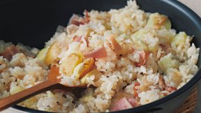 この時季に出回る新じゃがと相性のよいベーコンを一緒に炊き込み、あっさりとした塩バター味に仕上げます。