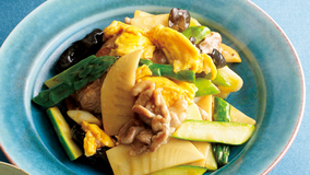 歯ごたえのよい初夏野菜と豚こまを、オイスターソースが決め手の合わせ調味料で仕上げます。