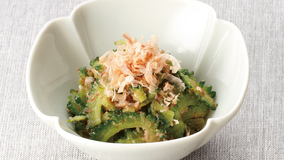 塩麹で塩けもまろやかな簡単あえもの。火を使わずに、サッともむだけでできます。ゴーヤーのビタミンパワーが夏の疲れを取ってくれますよ。