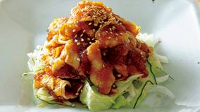 ゼラチンでとろみをつけたポン酢ジュレをからめれば、ひと味違うおいしさに。大根おろしで、あと味もさっぱり。たっぷりの野菜と一緒にどうぞ。