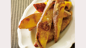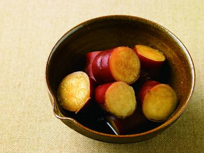 スティック状に切ったさつまいもをフライパンで焼き上げます。バターとシナモンの香りが効いた大人っぽいおやつです。