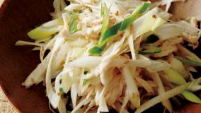 むね肉をフライパンで蒸しゆでにし、風味のよいねぎソースをたっぷりかけます。しっとり仕上げるコツは“冷まし方”にあり!