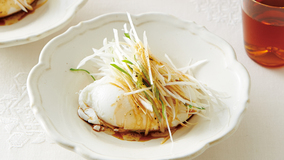 たっぷりの薬味をのせ、風味のよいたれをかけたら、中国風の前菜のでき上がり。お酒にも、ご飯にもピッタリな一品です。