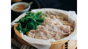 たっぷりのねぎと豚肉の炒め物は、シンプルな塩味に柚子(ゆず)の香りで季節感をプラスします。