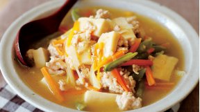 野菜を細切りでそろえると、早く火が通って、味のなじみもよくなります。温かいうちに食べても、冷やしてもおいしい。