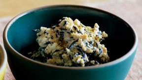 里芋とそら豆、みその取り合わせが新鮮。里芋は冷たい油に入れ、じっくり揚げると、ホクホクに仕上がります。