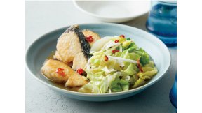 フライパンに材料を並べてふたをして火にかけるだけ!酒とキャベツの水分だけで蒸し上がります。梅肉の酸味が食欲をそそり、もっとキャベツが食べたいと思える一品。