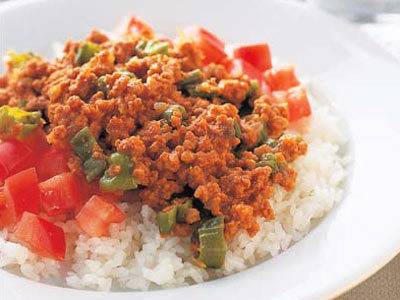 ヨーグルトとトマトジュースで煮込むとまろやかな味わい。市販のルーを使わなくてもとろみがつきます。